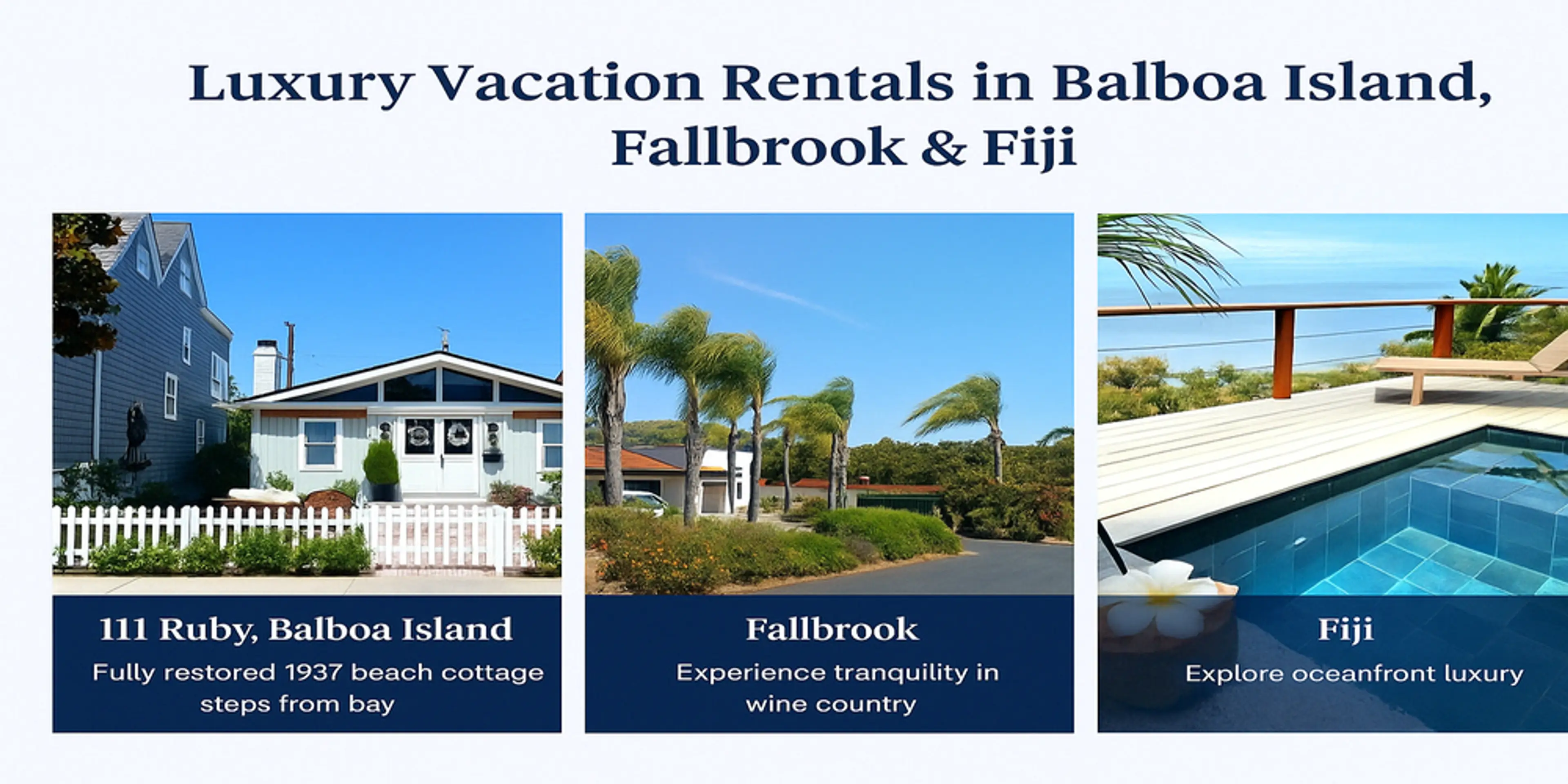 Discover 5-Star Luxury Rentals in Fiji, Balboa Island & Fallbrook Wine Country – Book Direct & Save!